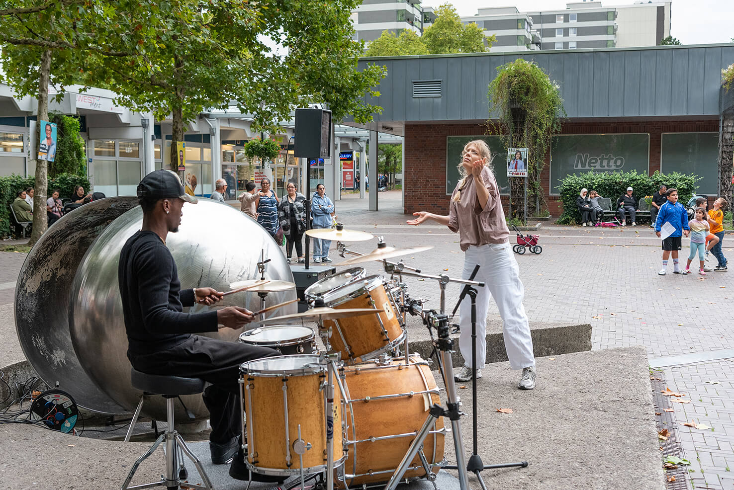 Daria Nazarenko zeigte am 4. September 2025 gegen 19:15 Uhr eine Performance am Berliner Platz in Ratingen-West.