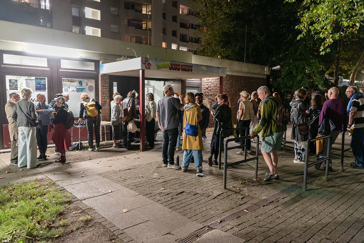 Die Spaziergänge machten die Teilnehmenden mit den Künstler*innen, deren Arbeitsweisen, den Workshopthemen und dem Stadtteil vertraut.