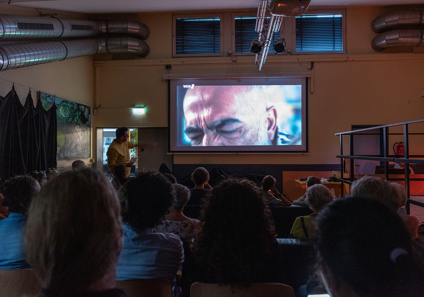 Der Dokumentarfilm „Aşk, Mark ve Ölüm - Liebe, D-Mark und Tod (2022) von Cem Kaya erzählt in Archivbildern und Interviews von der einzigartigen Geschichte der Musik-Kultur der türkischen Einwanderer, ihrer Kinder und Enkelkinder in Deutschland. Der Film- und TV-Produzent Stefan Kauertz, aufgewachsen in Ratingen-West, hat den Film mit seiner Firma „Filme Five“ produziert. Der Musiker Tachi berichtet im Film von der Gründung der Hip-Hop-Formation „Fresh Familee“ in Ratingen-West. Beide sprachen vor dem Film mit Anne Schülke, dem Leiter des Stadtarchivs Ratingen, Sebastian Barteleit, und dem Leiter des Jugend Clubs, Tim Heyer, darüber, wie wichtig es ist, sich aus verschiedenen Perspektiven und gemeinsam zu erinnern, zu trauern und zu feiern. Das Publikum beteiligte sich an dem Gespräch.